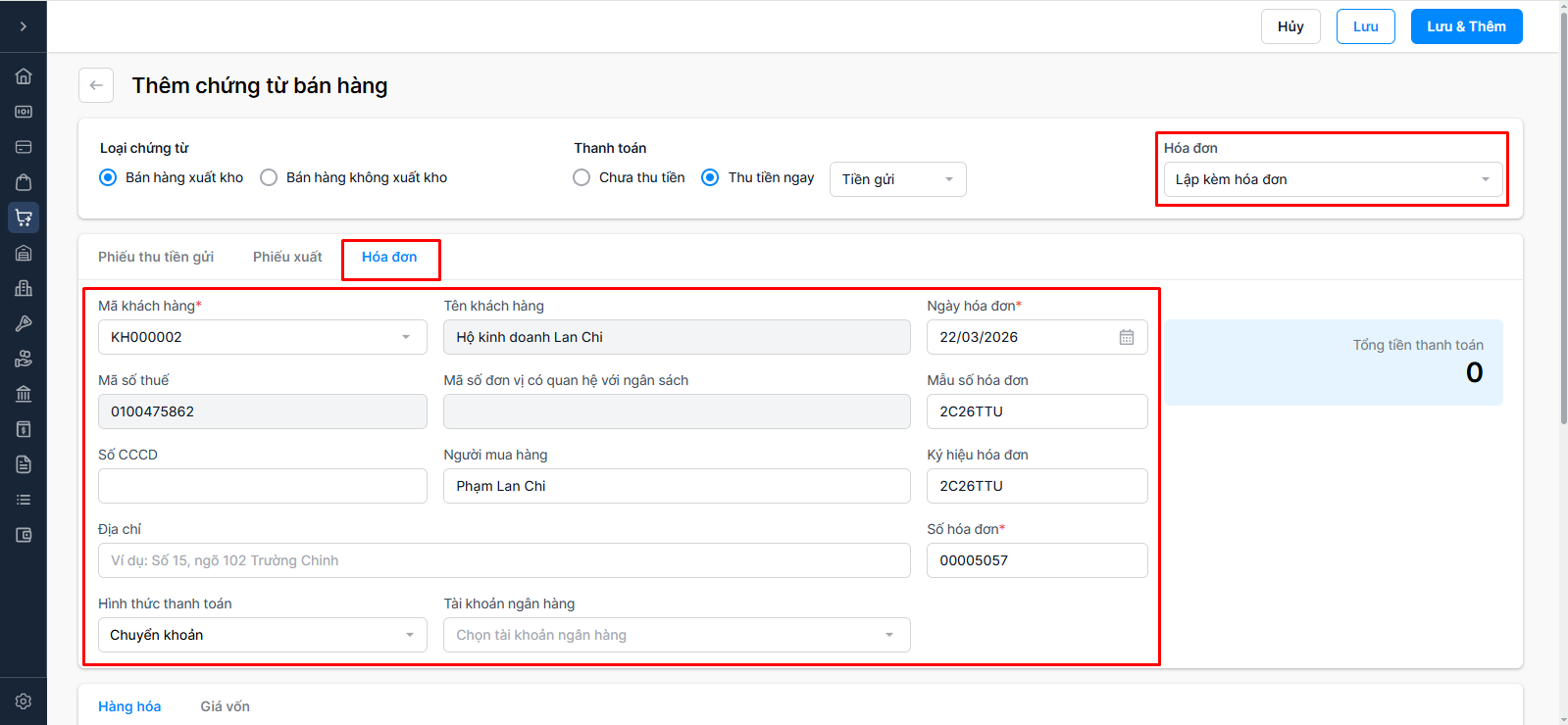 Lập kèm hóa đơn: Xuất hóa đơn tại thời điểm bán hàng