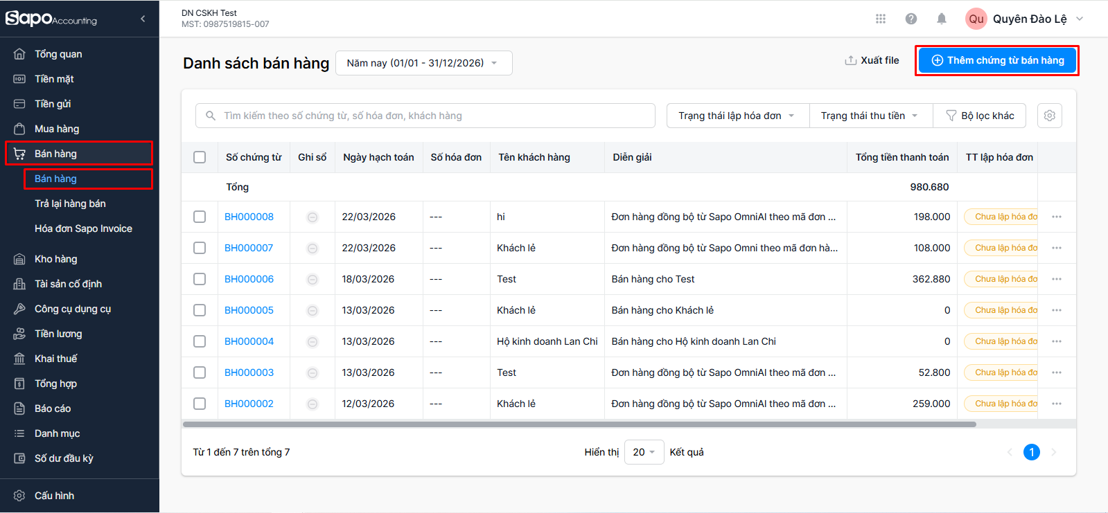 Bán hàng xuất kho trên Sapo Accounting - Doanh nghiệp (DN)