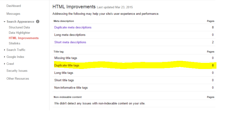 Vấn đề 2: Có quá nhiều thẻ tiêu đề (title) trùng lặp