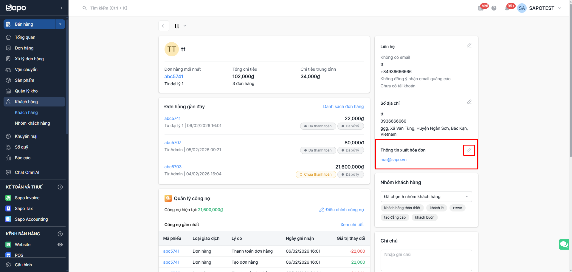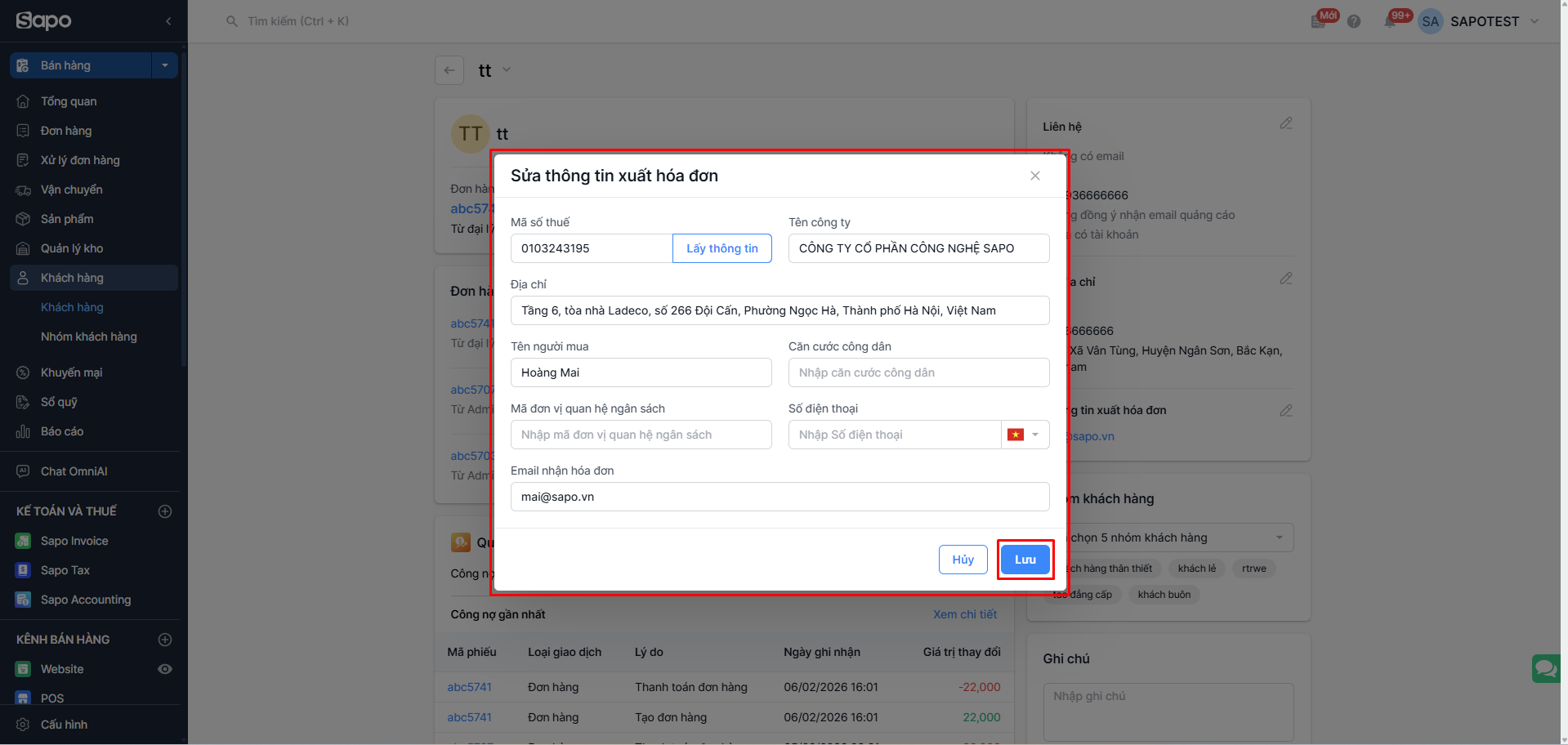 - Trên màn Sửa thông tin khách hàng, xem và điều chỉnh lại các thông tin: