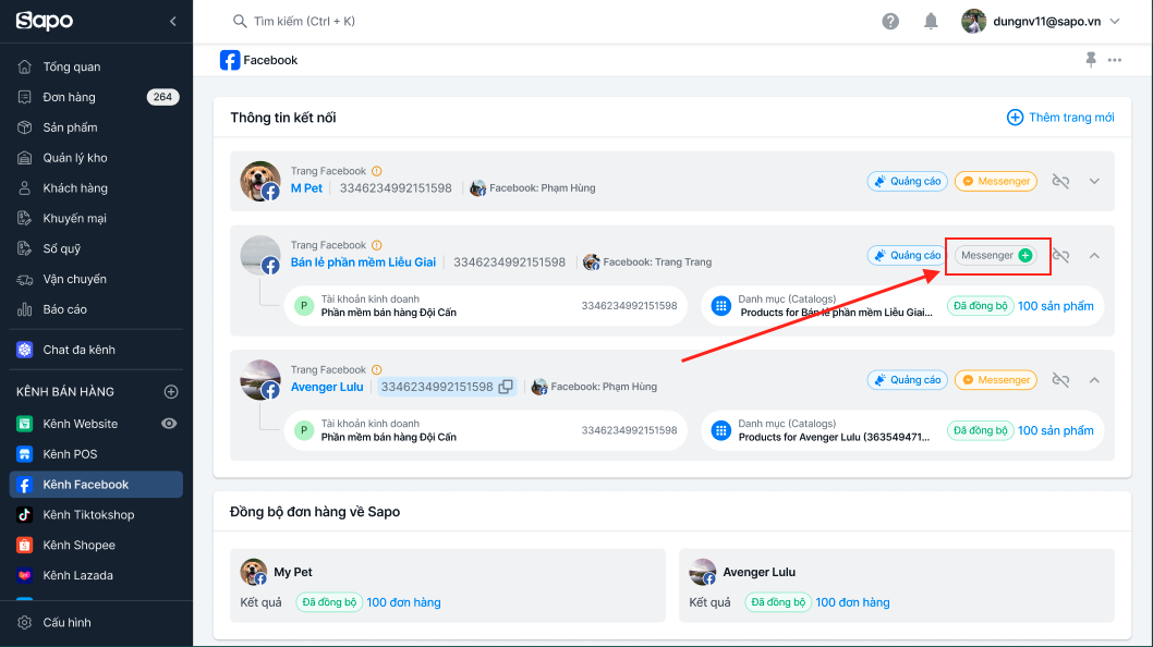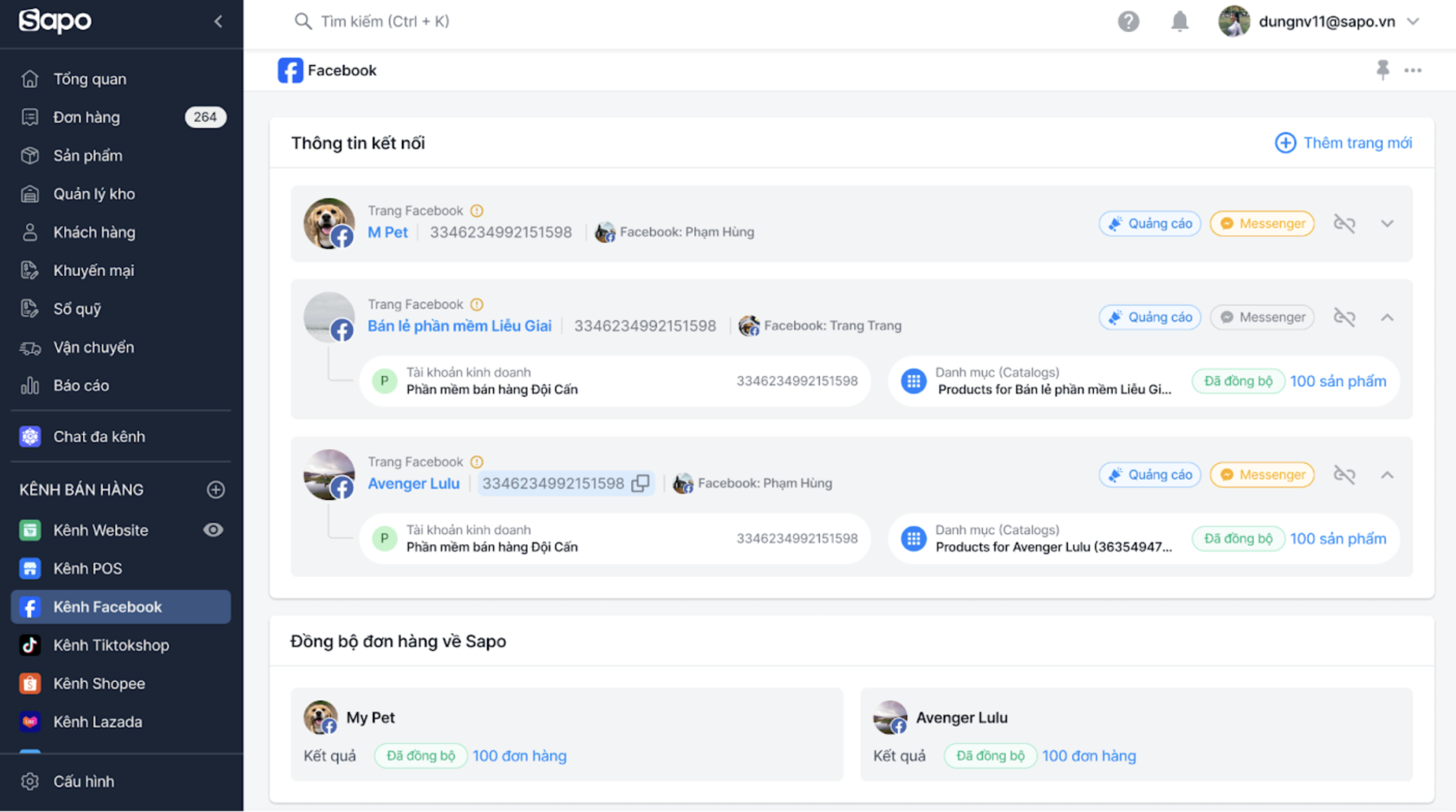 Sau khi kết nối thành công, bạn sẽ được đưa về màn hình Kênh Facebook trên Sapo. Tại đây, bạn có thể kiểm tra lại: