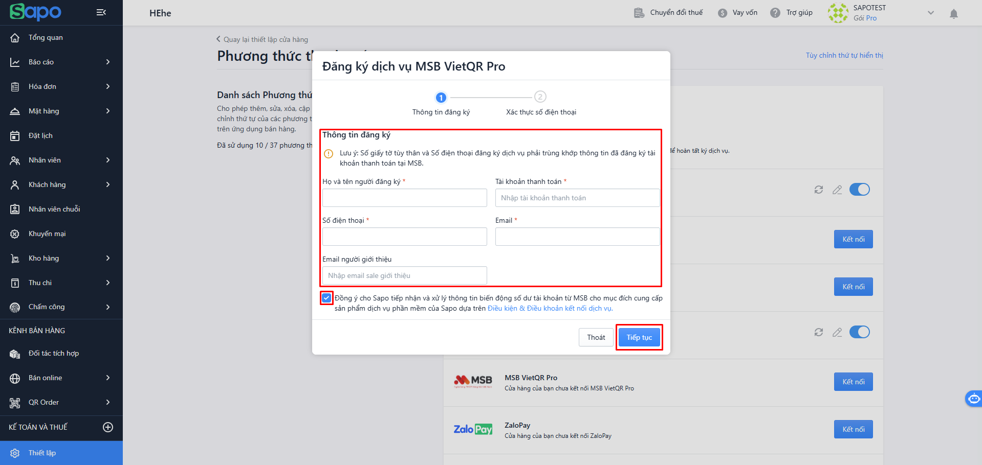 Bước 1: Truy cập màn hình Đăng ký dịch vụ MSB VietQR PRO