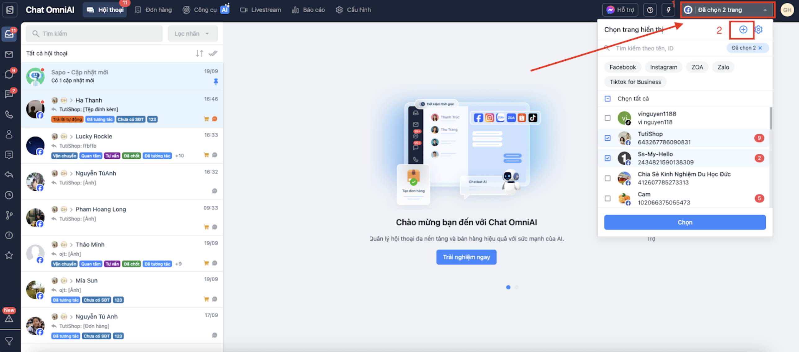 - Hoặc tại màn hình Hội thoại, chọn Trang hiển thị → Thêm Trang.