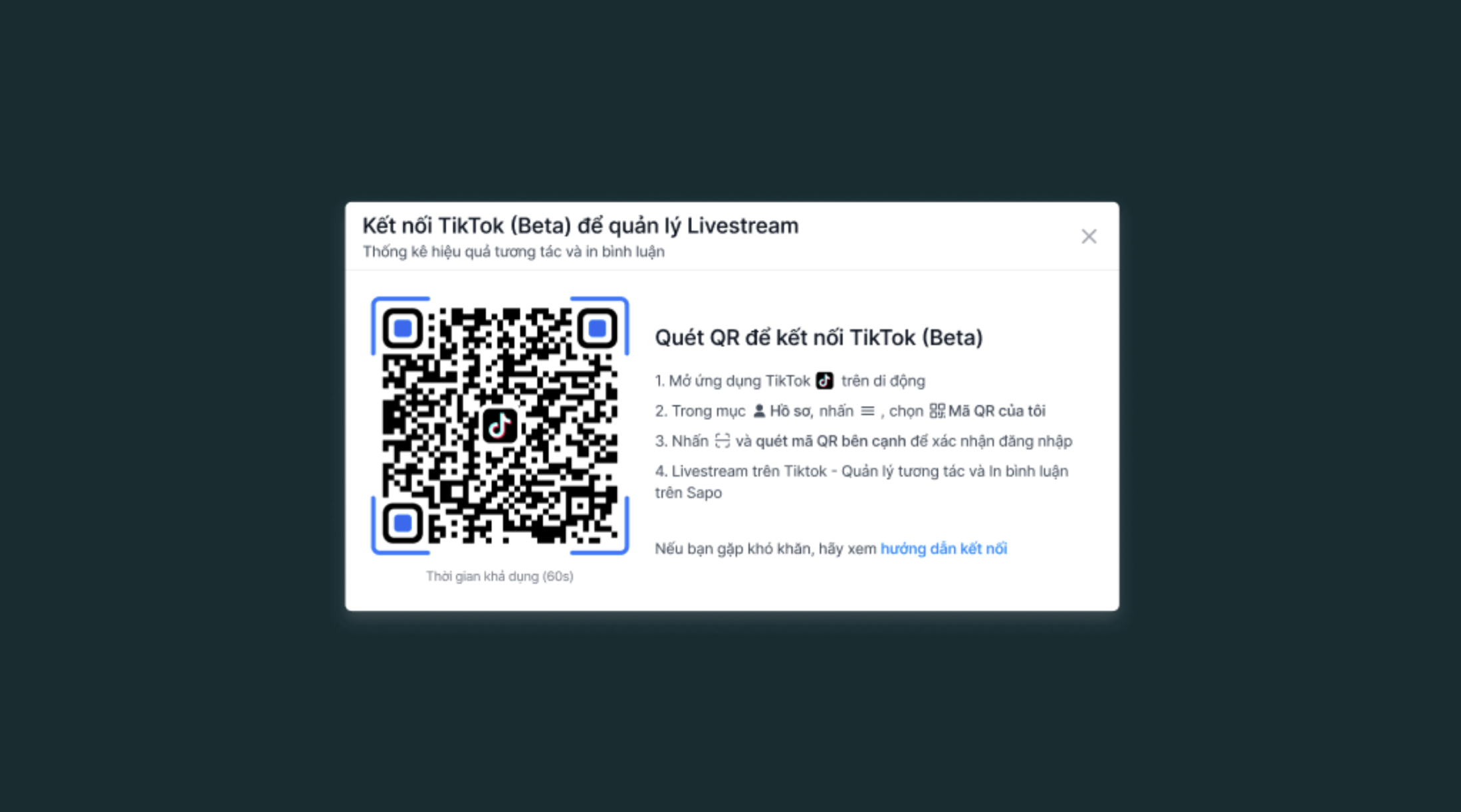 - Mã QR sẽ hiển thị trên màn hình Sapo.