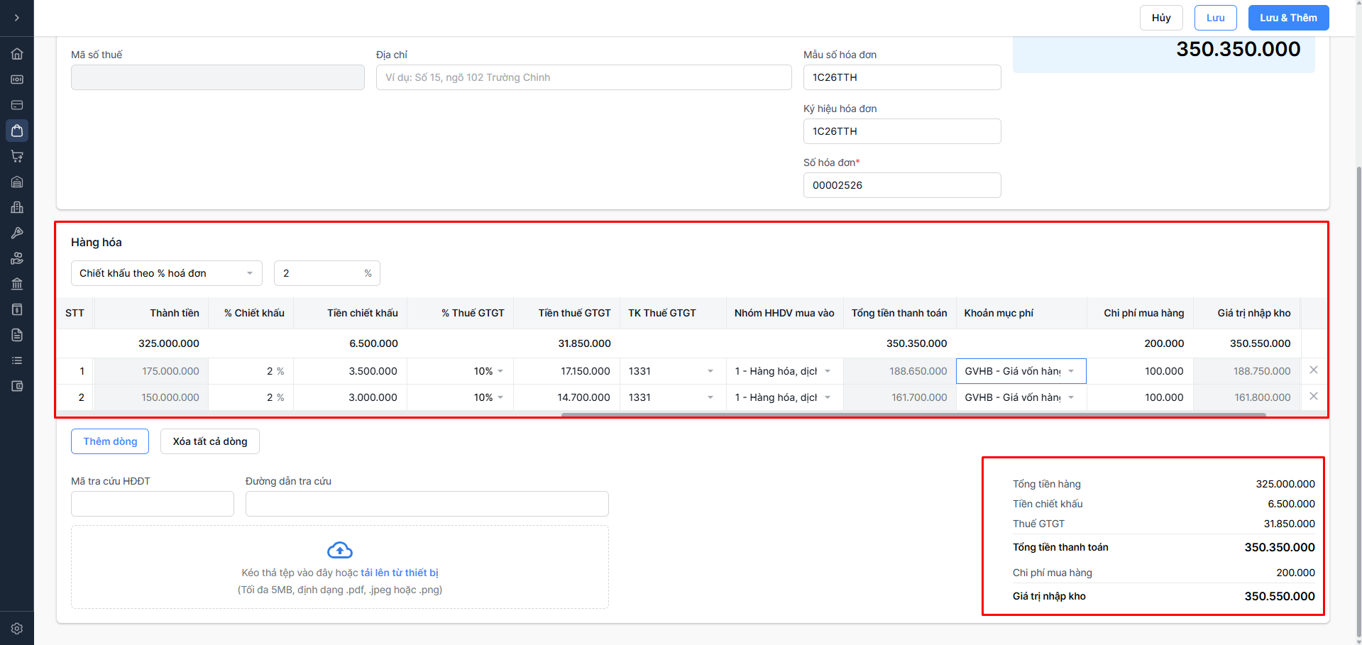 2. Nhập thông tin hóa đơn