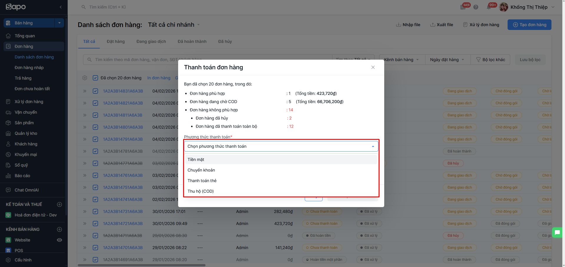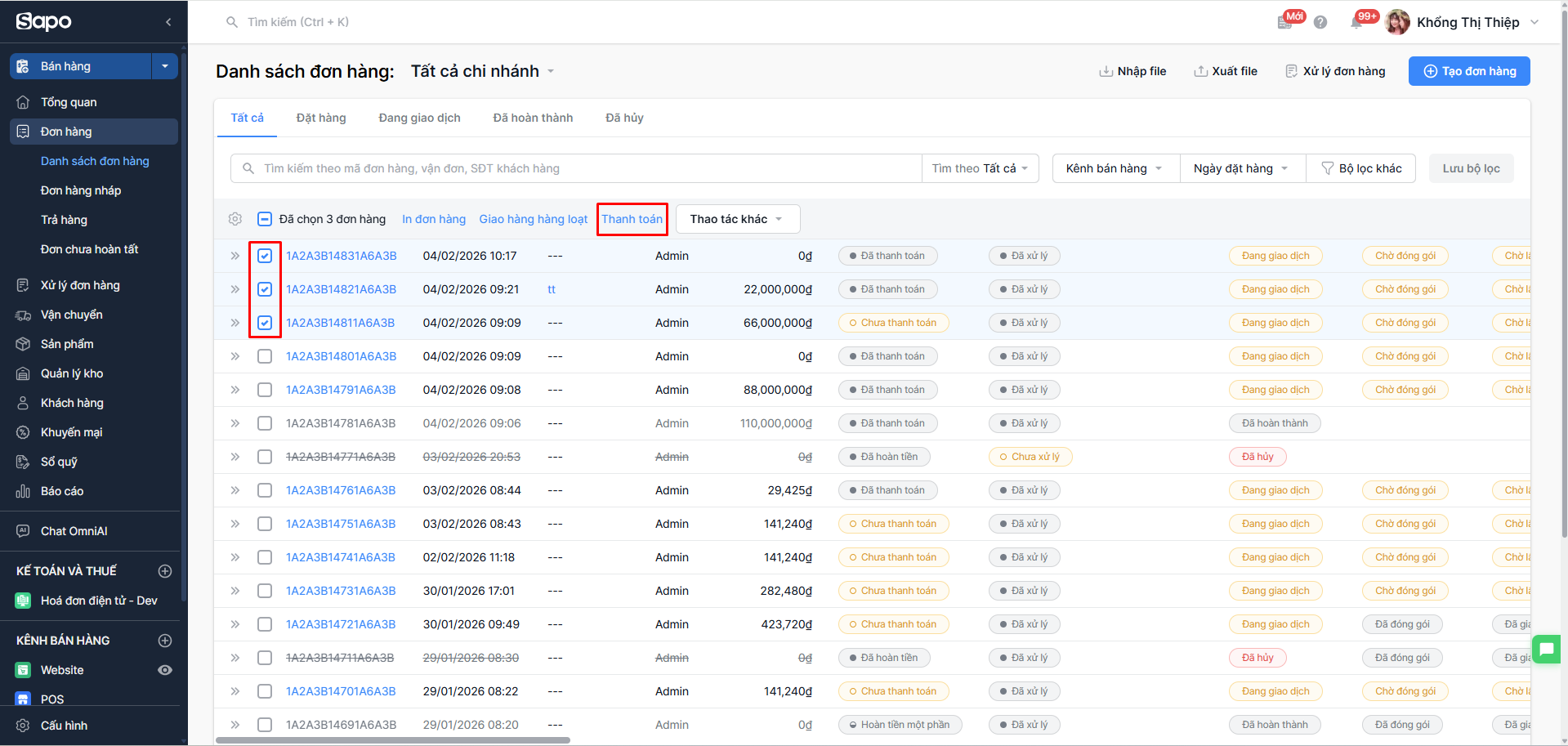 Bước 3: Thanh toán hàng loạt các đơn hàng