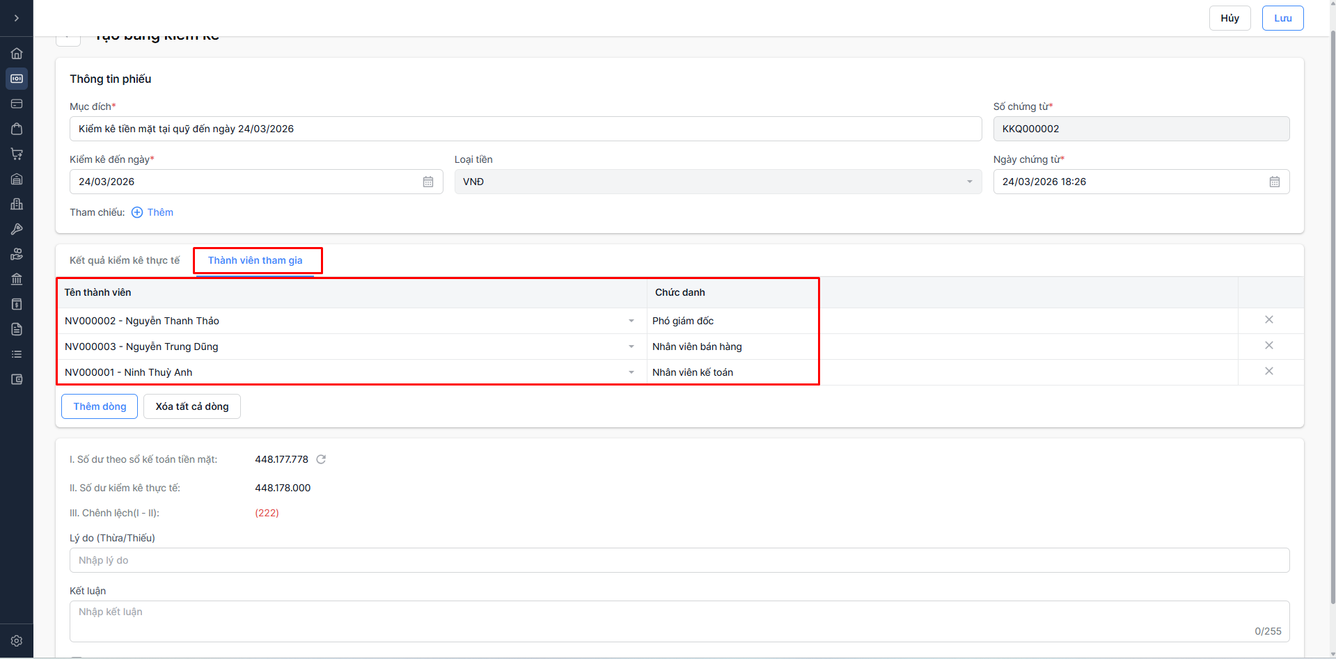 Bước 4: Hoàn tất biên bản kiểm kê tiền mặt