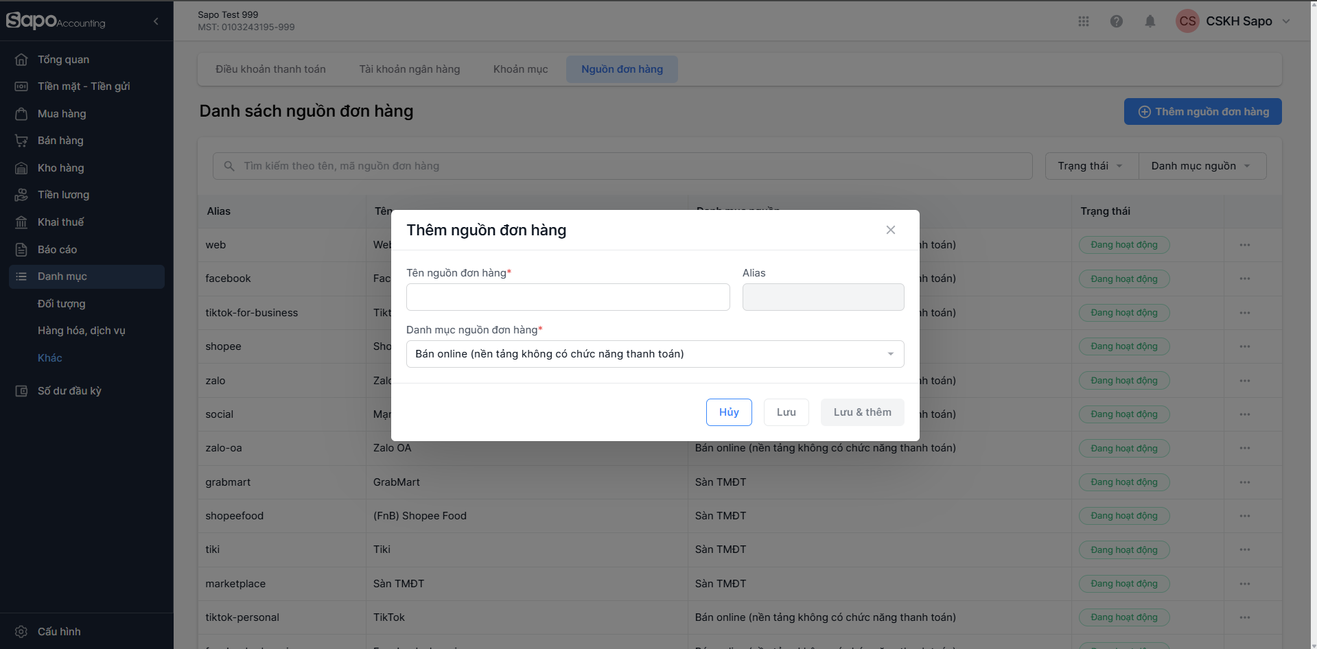 - Lưu ý: Tên nguồn đơn hàng chứa tối thiểu 1 và tối đa 50 ký tự, không trùng nguồn đã có; chỉ gồm chữ, số, khoảng trắng.