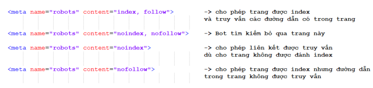 Thẻ Meta Robots được sử dụng đặt trong trang website để điều khiển robots đọc nội dung của từng trang.