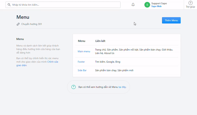 | Tất cả sản phẩm | Hiển thị tất cả sản phẩm có trên website. |