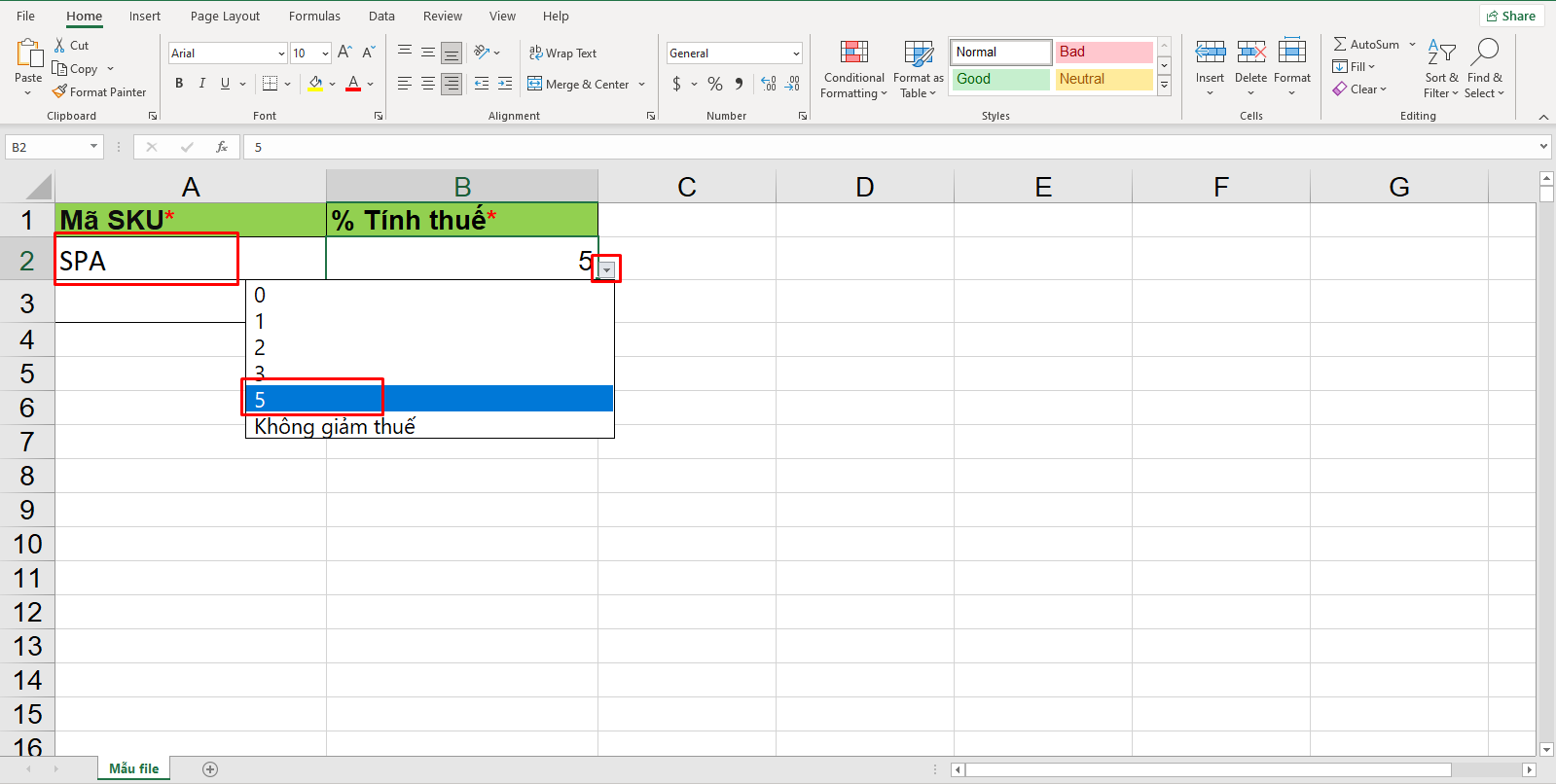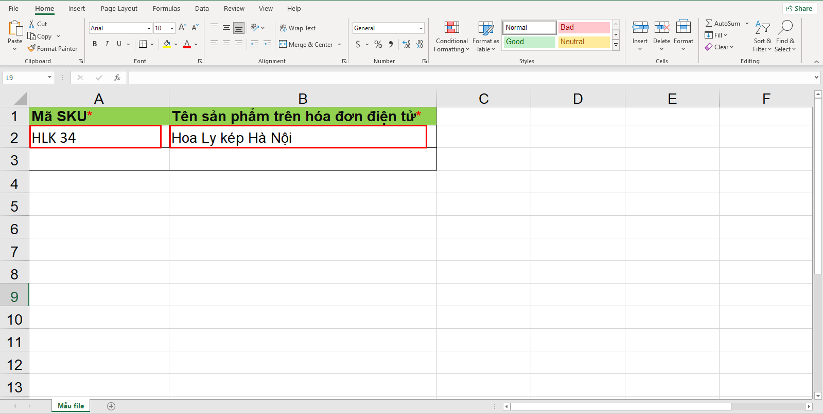 Bước 3: Tải file mẫu và nhập dữ liệu