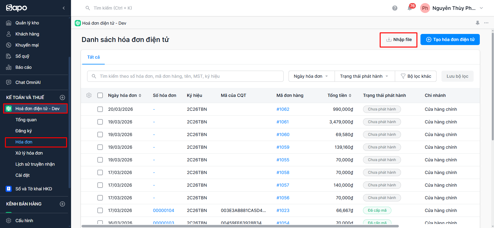 Sau khi thiết lập dữ liệu, bạn tiến hành lập và phát hành hóa đơn cho các đơn hàng theo đúng quy định. Xem chi tiết hướng dẫn tại đây.