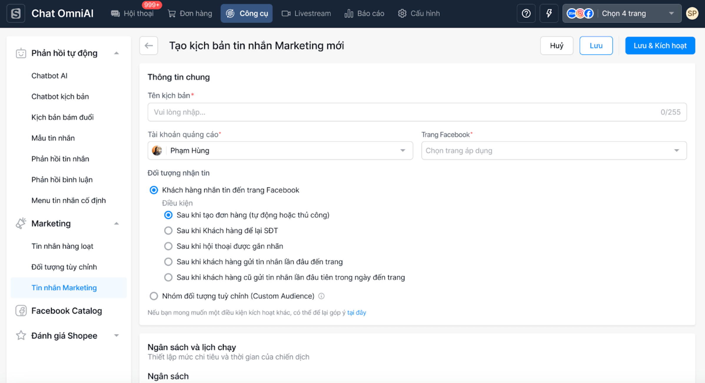 Sau khi hoàn tất, chọn "Lưu và kích hoạt" để bắt đầu chiến dịch