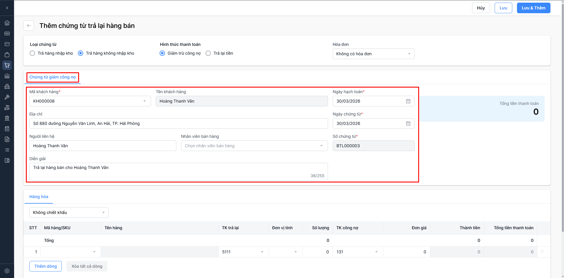 Nhấn Lưu và Thêm để hoàn tất và thêm chứng từ khác.