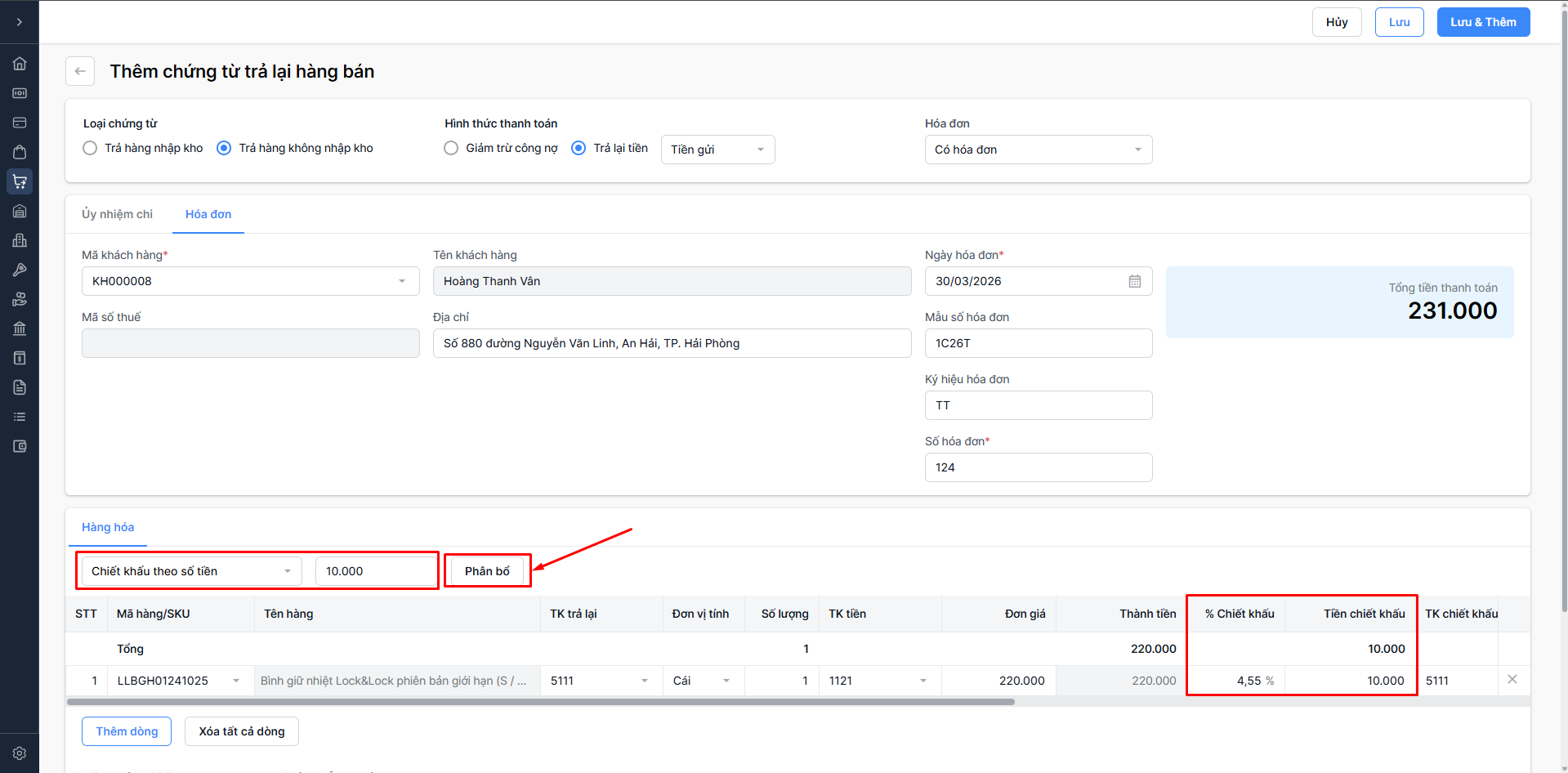 Nhập giá trị chiết khấu > Nhấn chọn Phân bổ.