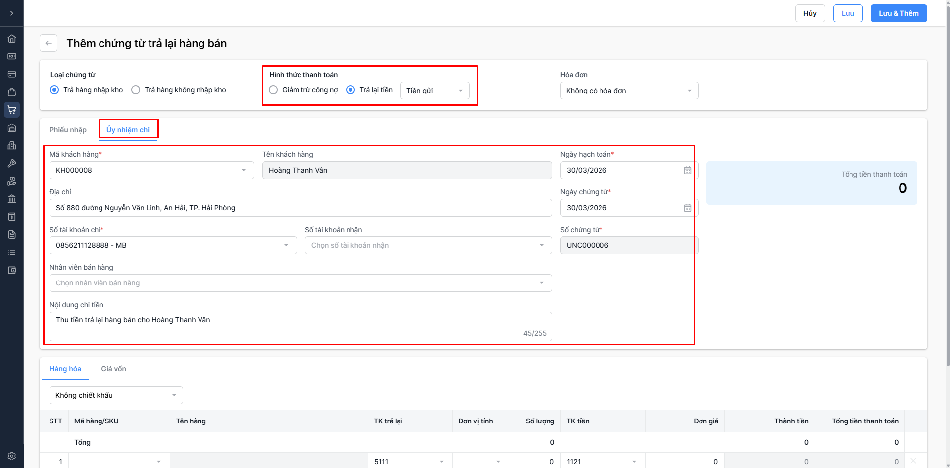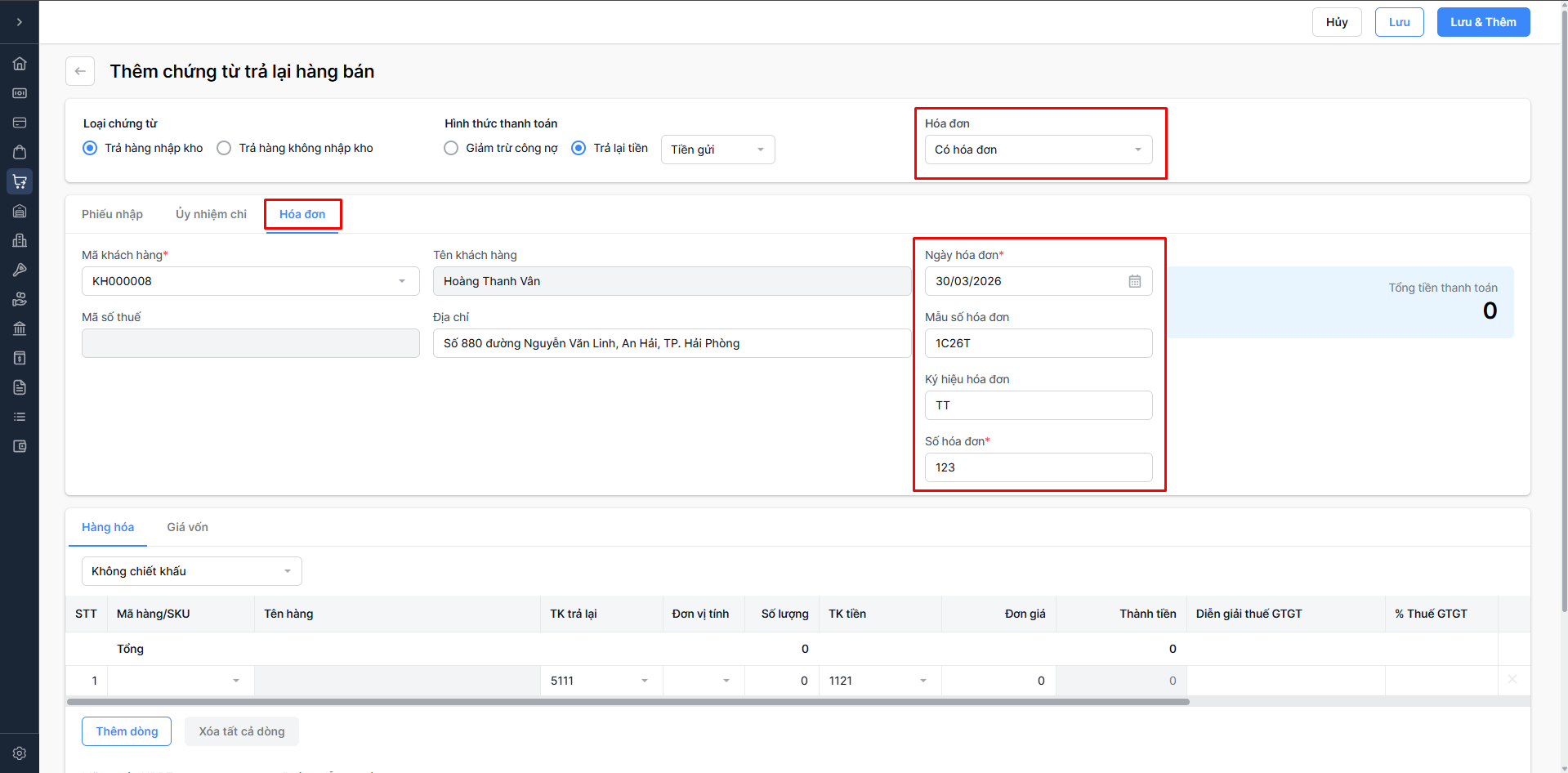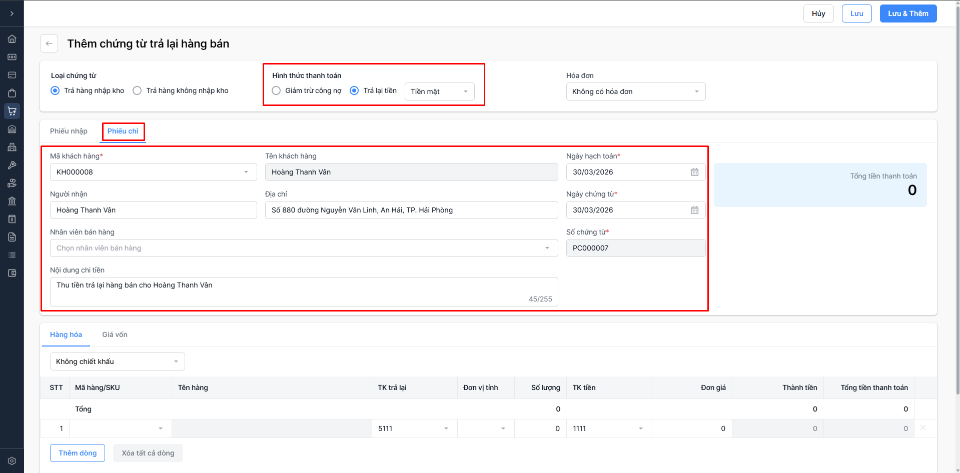 Nhấn Lưu và Thêm để hoàn tất và tiếp tục thêm chứng từ khác.