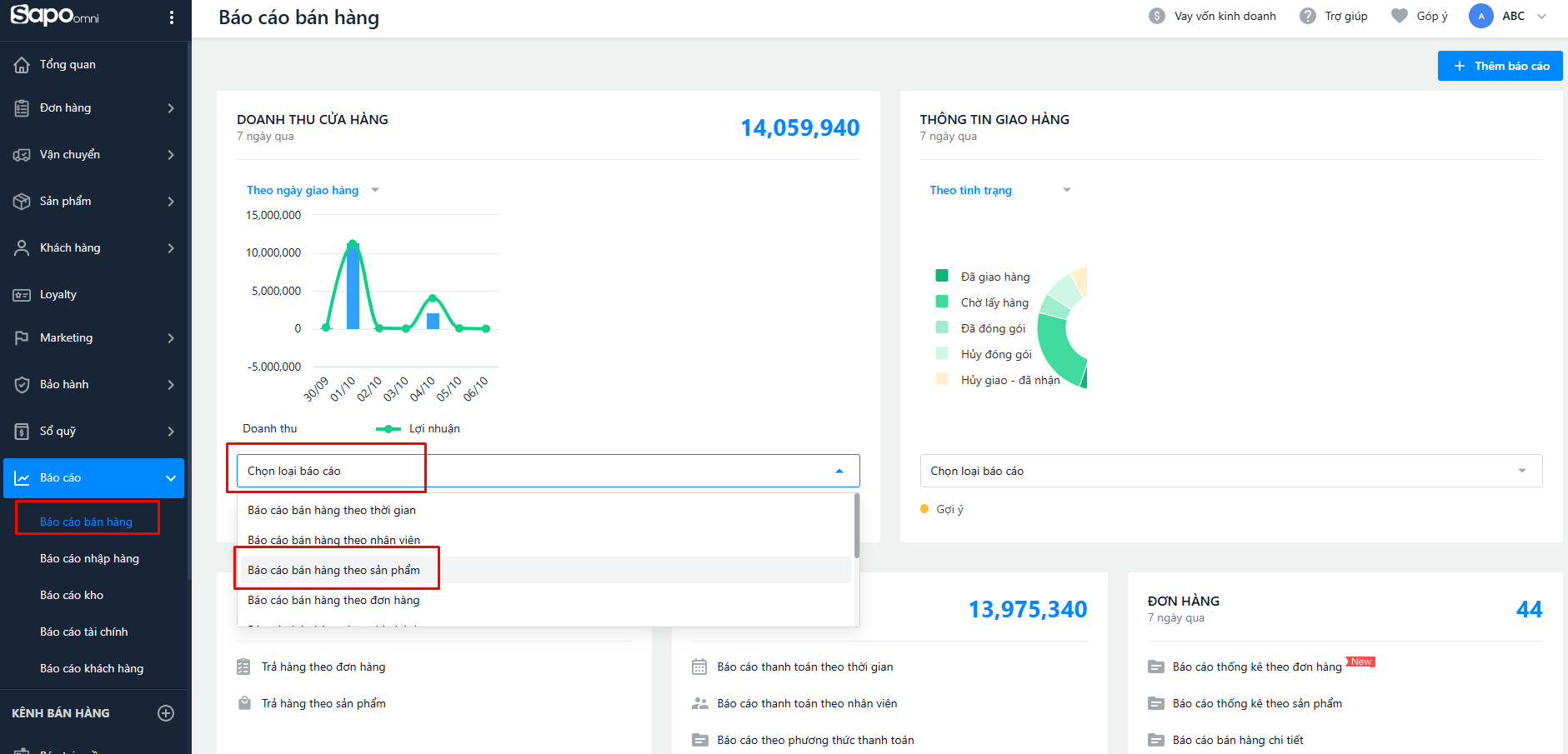 Báo cáo Bán hàng theo sản phẩm trên Sapo giúp nhà bán hàng theo dõi chi tiết tình hình kinh doanh của các mặt hàng khác nhau trong cửa hàng đã giao thành công. Báo cáo cung cấp các chỉ số quan trọng như số lượng đơn hàng, tiền hàng, tiền thuế, doanh thu, lợi nhuận... giúp bạn đánh giá hiệu quả bán hàng và đưa ra quyết định phù hợp.