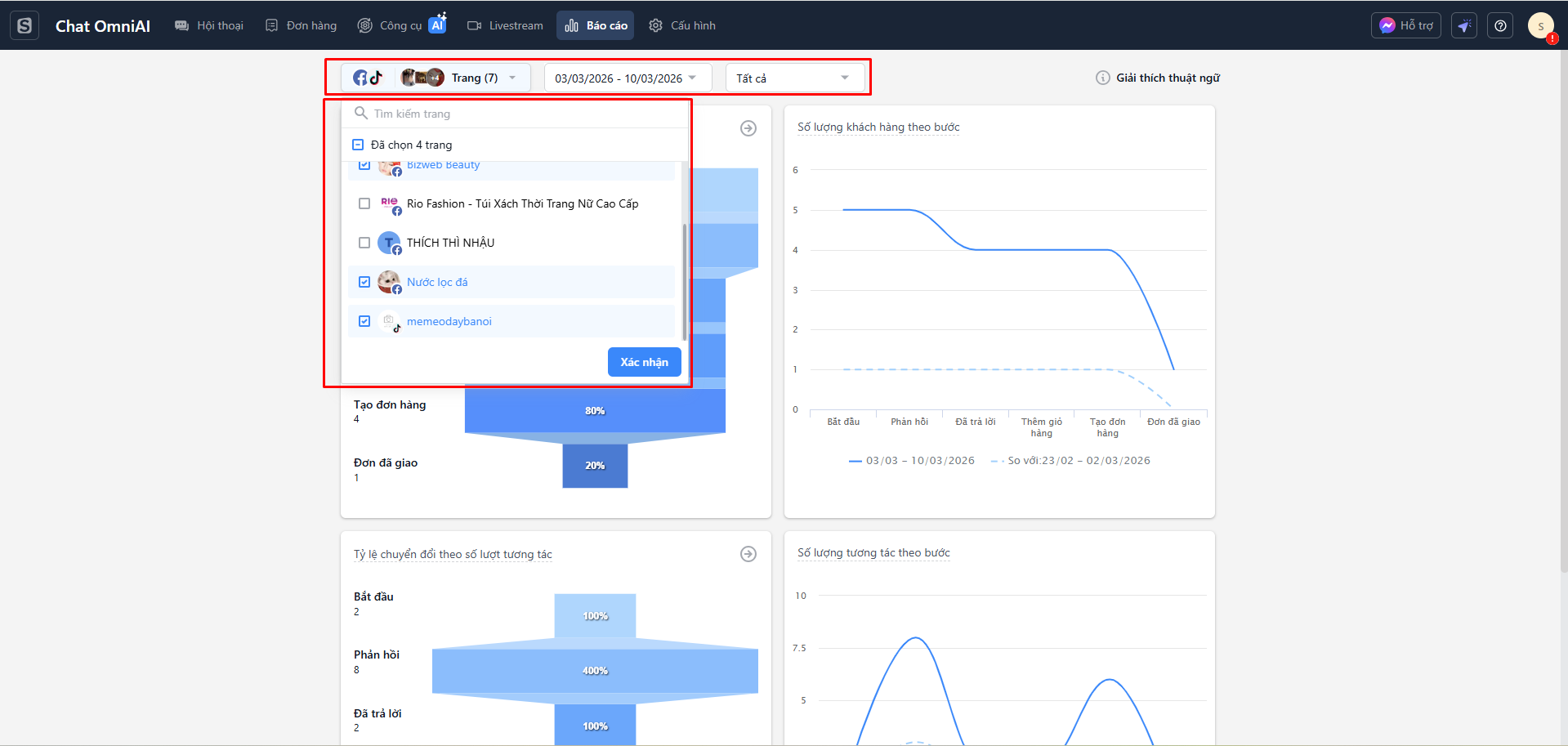 - Bộ lọc dữ liệu: Lọc theo Trang, Thời gian, Nguồn khách hàng.