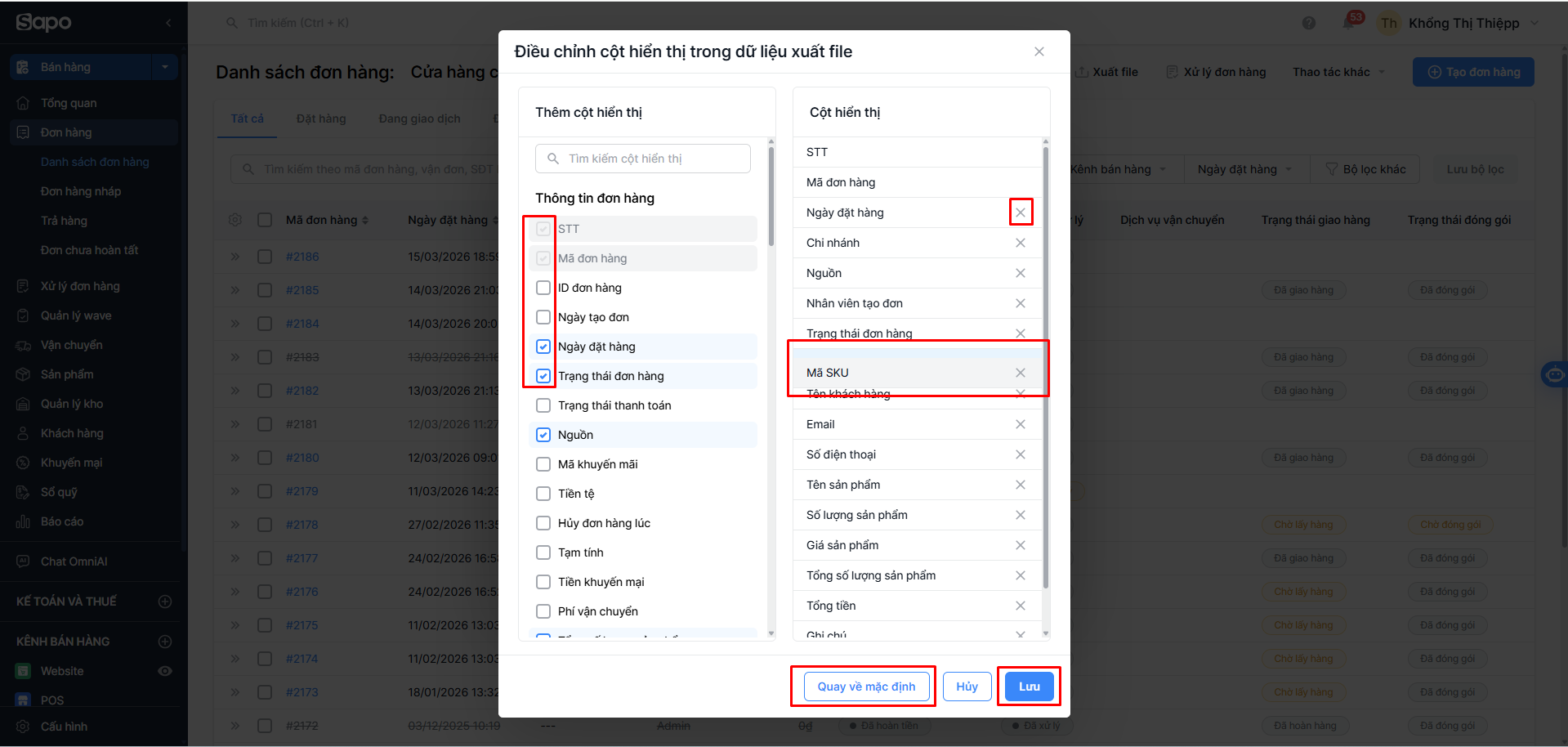 - Để thực hiện tùy chỉnh trường dữ liệu xuất, bạn thao tác như sau:
